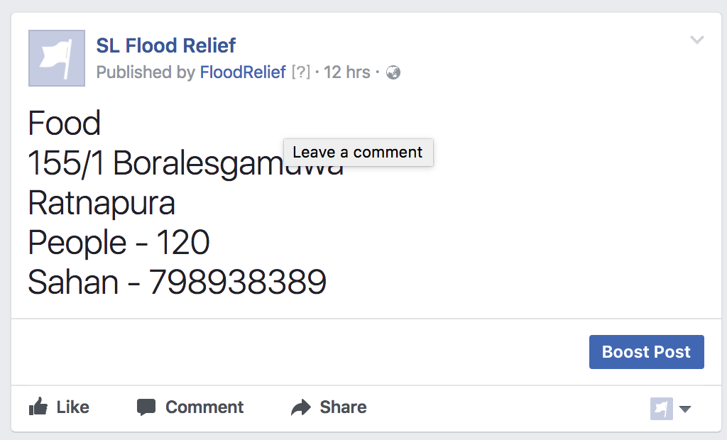 https://www.facebook.com/SL-Flood-Relief-137605090120516/