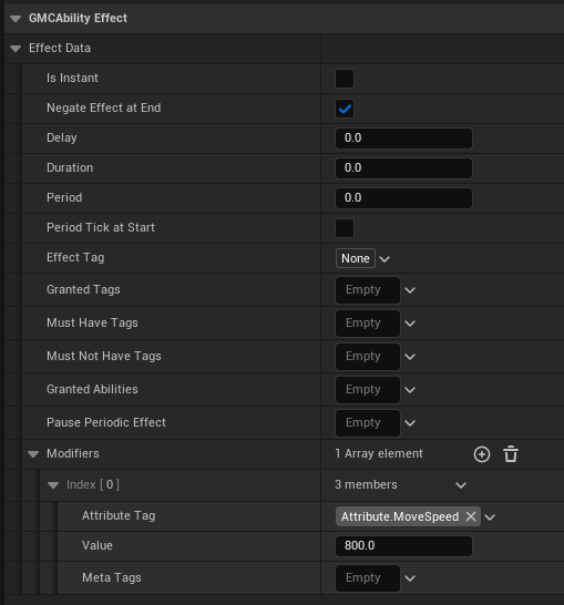 Next, create a new GMCAbilityEffect named "SprintSpeedBuff". Configure it like so: