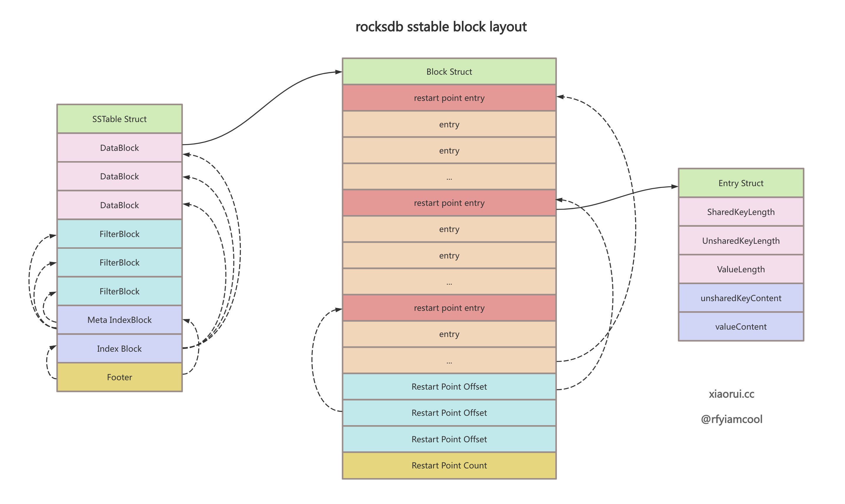 下图为 rocksdb sstable 和 block 的数据结构关联图.