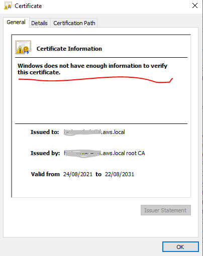Hi, i'm using your role to generate CA certificate with server certificate but windows not recognized as CA root, because say missing information.