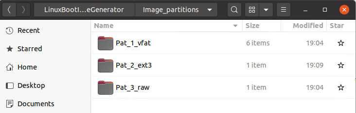 The script will generate for every selected partition a depending folder. At this point it is enabled to drag&drop files and folders to the partition folder. This content will then be included in the final image file. Linux device tree- and archive-files, copied to the partition folder, will be automatically processed by the script incase these features were enabled for the partition inside the XML file. Of cause, archive files or uncompiled device tree files will not be added to the final image.
