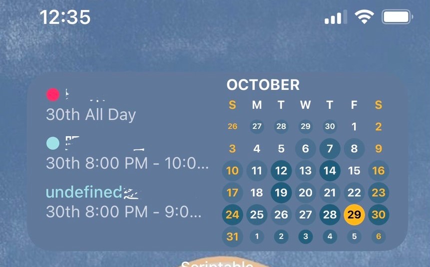 I copied calendar.js to my scriptable and changed some variables in the readme.md. It was worked two days ago, but there is an error code in the widget on my home screen today: