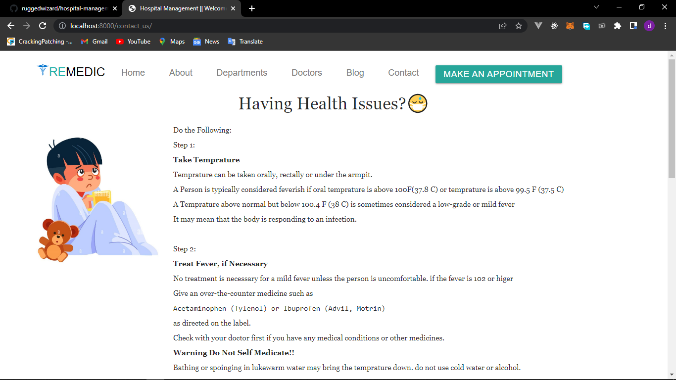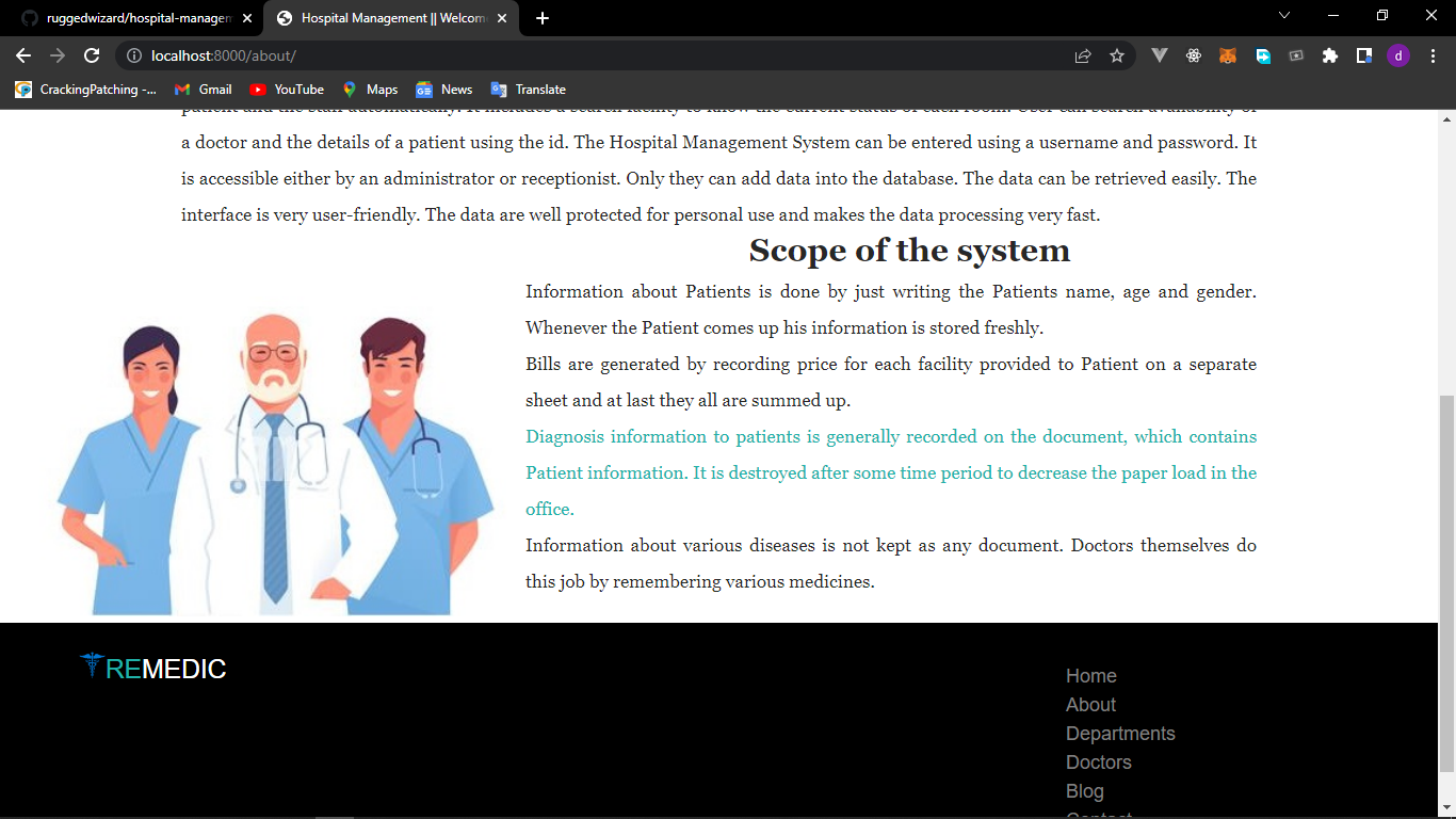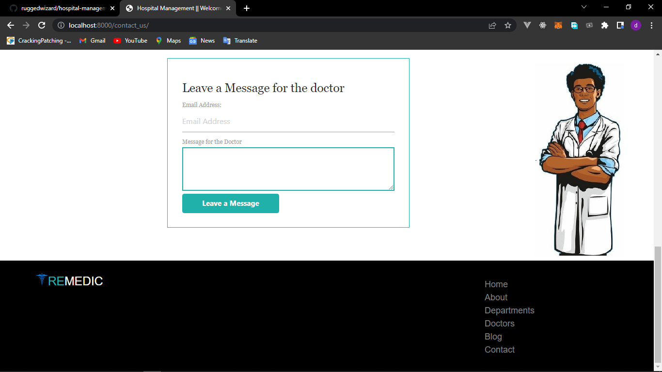 - A Website where the hospital can communicate with its users from the comfort of their home (....more to come)