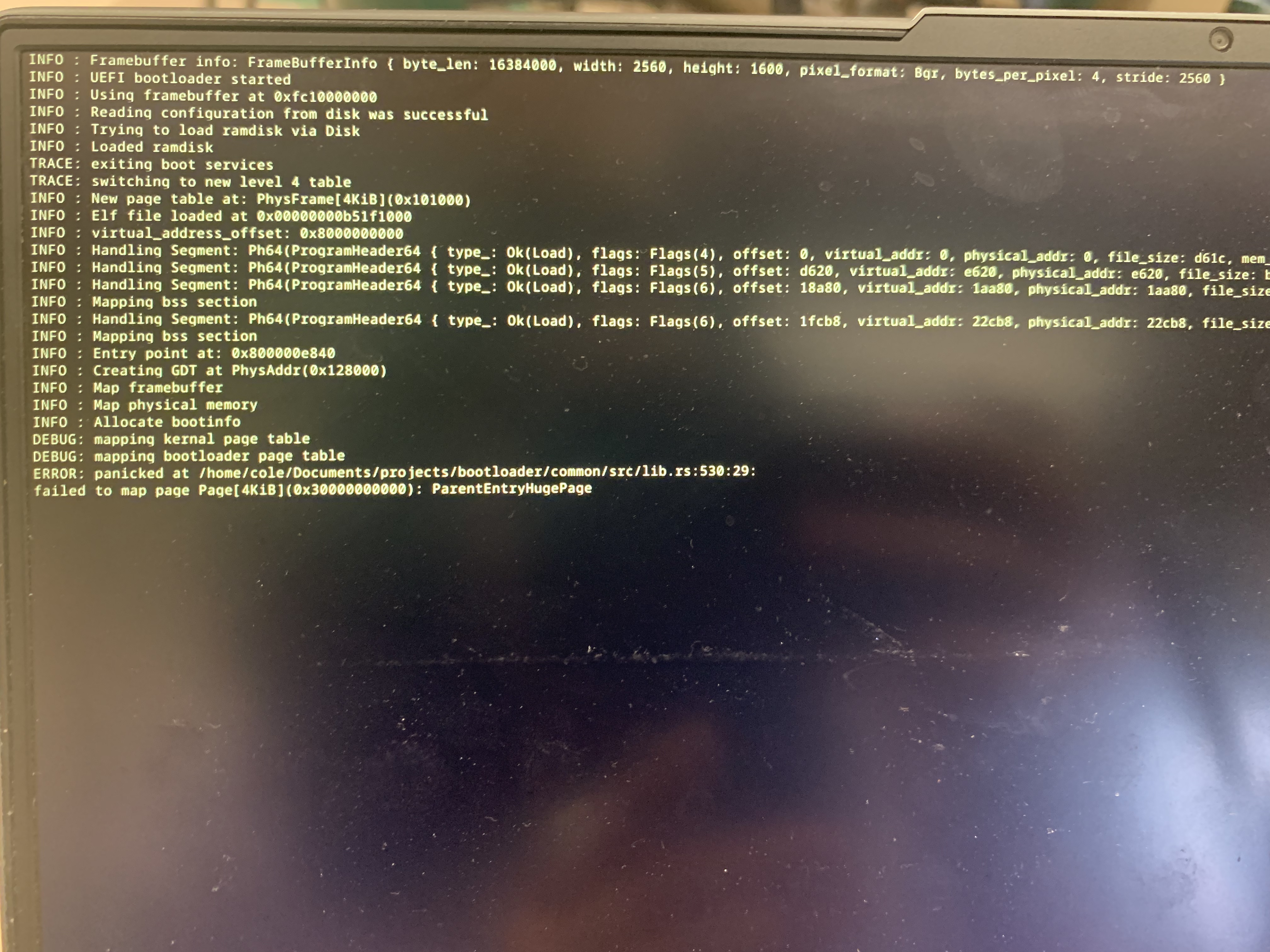 Yeah it still panics when trying to allocate boot info. I will try and do some more digging when I have a chance. It's panicking here.