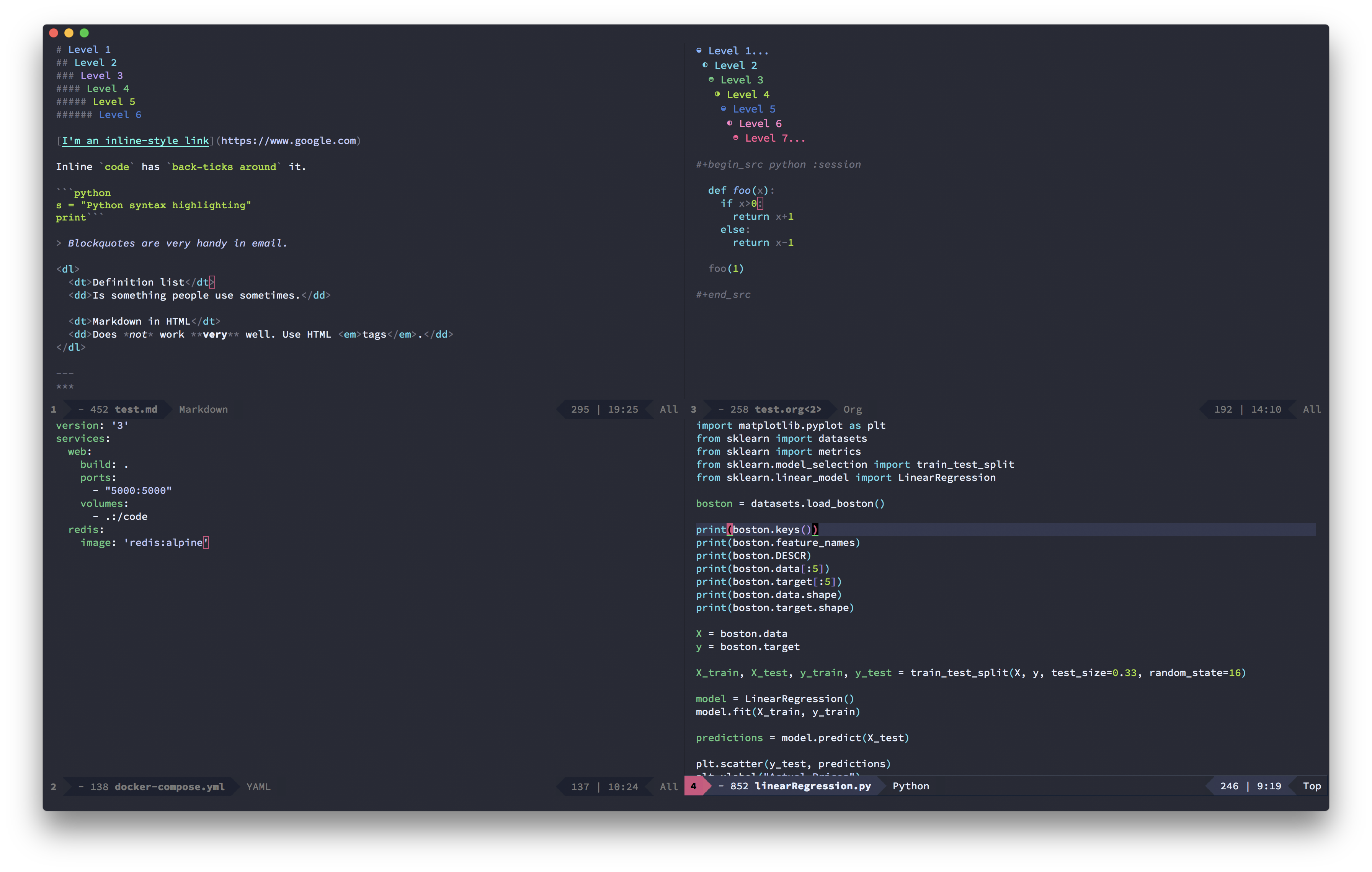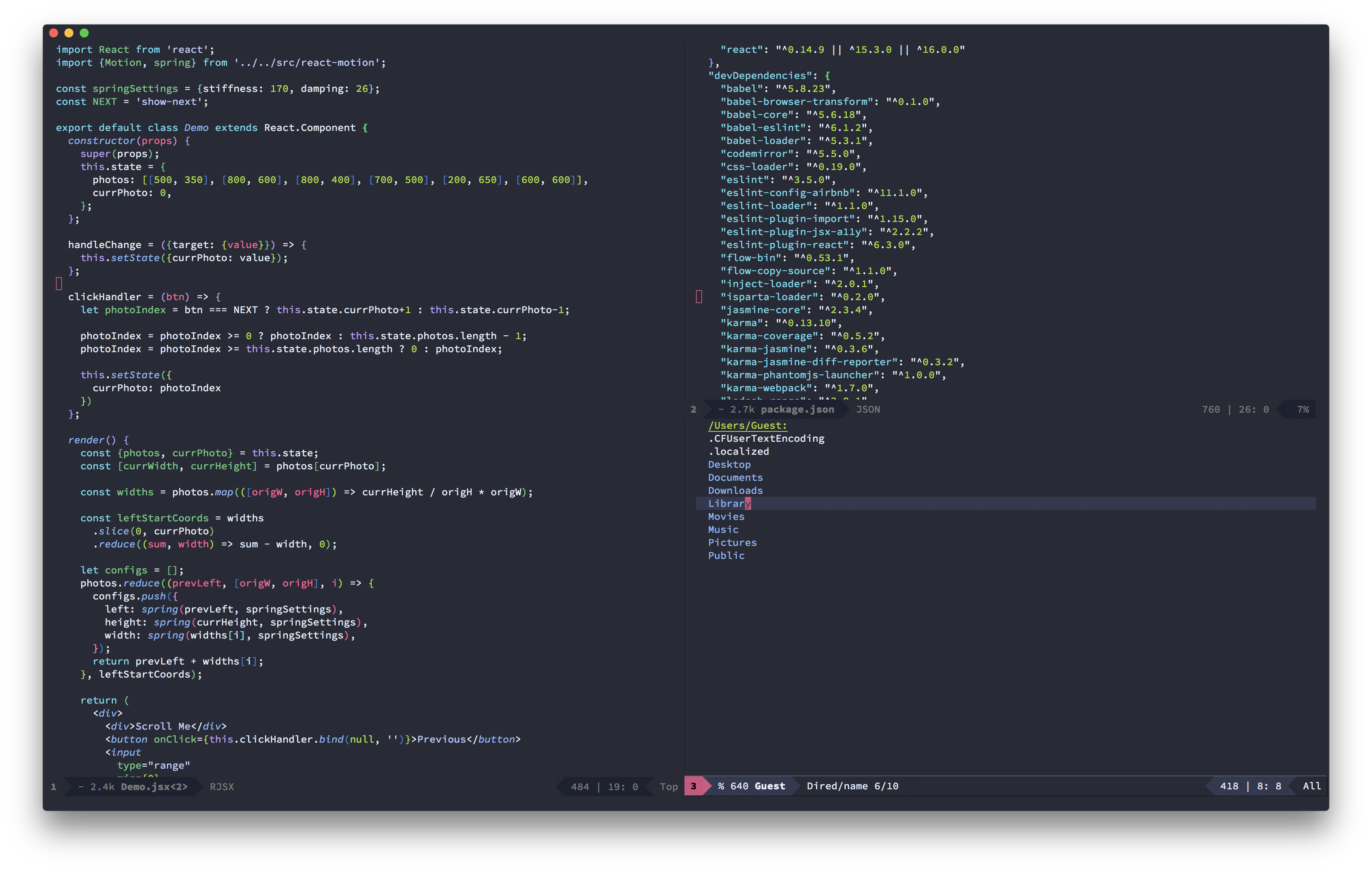 Screenshot info: Spacemacs, Source-Code-Pro font. To change the modeline and cursor on spacemacs with evil-mode