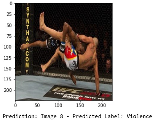 The aim of this project is to use a skeleton estimation performed through OpenPose, to classify if there is or not Violence in a given frame. As dataset, we used a subset of Real Life Violence Situations Dataset with exactly two people for each frame, that can be downloaded here. Both folders contains videos of violence/non violence situations, these have been framed (60fps) and each frame processed with OpenPose. Then we process the data in order to check if two people have been detected and save the data in a 100-feature .csv dataset. The feature used are basically X, Y coordinates of each detected body part, with a feature that indicates the distance from the camera, and some features to indicate the distance between body parts of people (eg. Nose of person 1, with hand of person 2). Then the training has been performed with a normal neural network and the achieved accuracy for the main model is around 82%.
