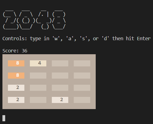 A Unison implementation of the game 2048 that uses the terminal as the user interface.