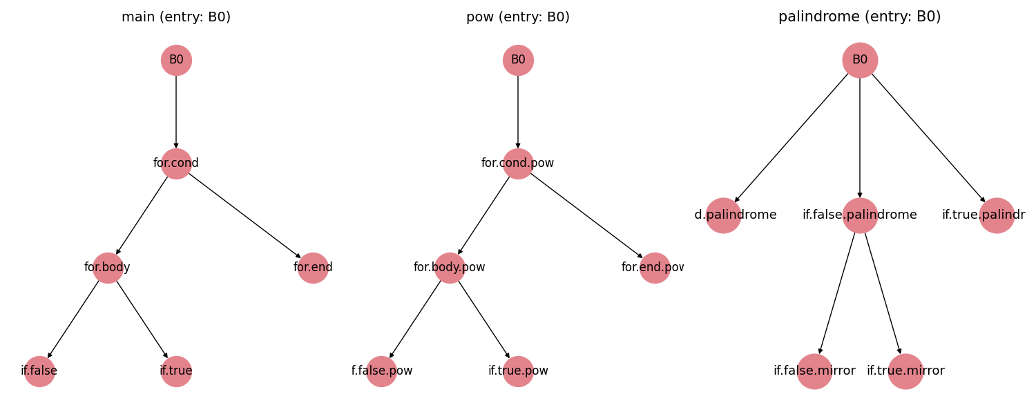 Together, these analyses provide a clear picture of the dominance structure in a program’s control flow. TestingI verified correctness in two ways: