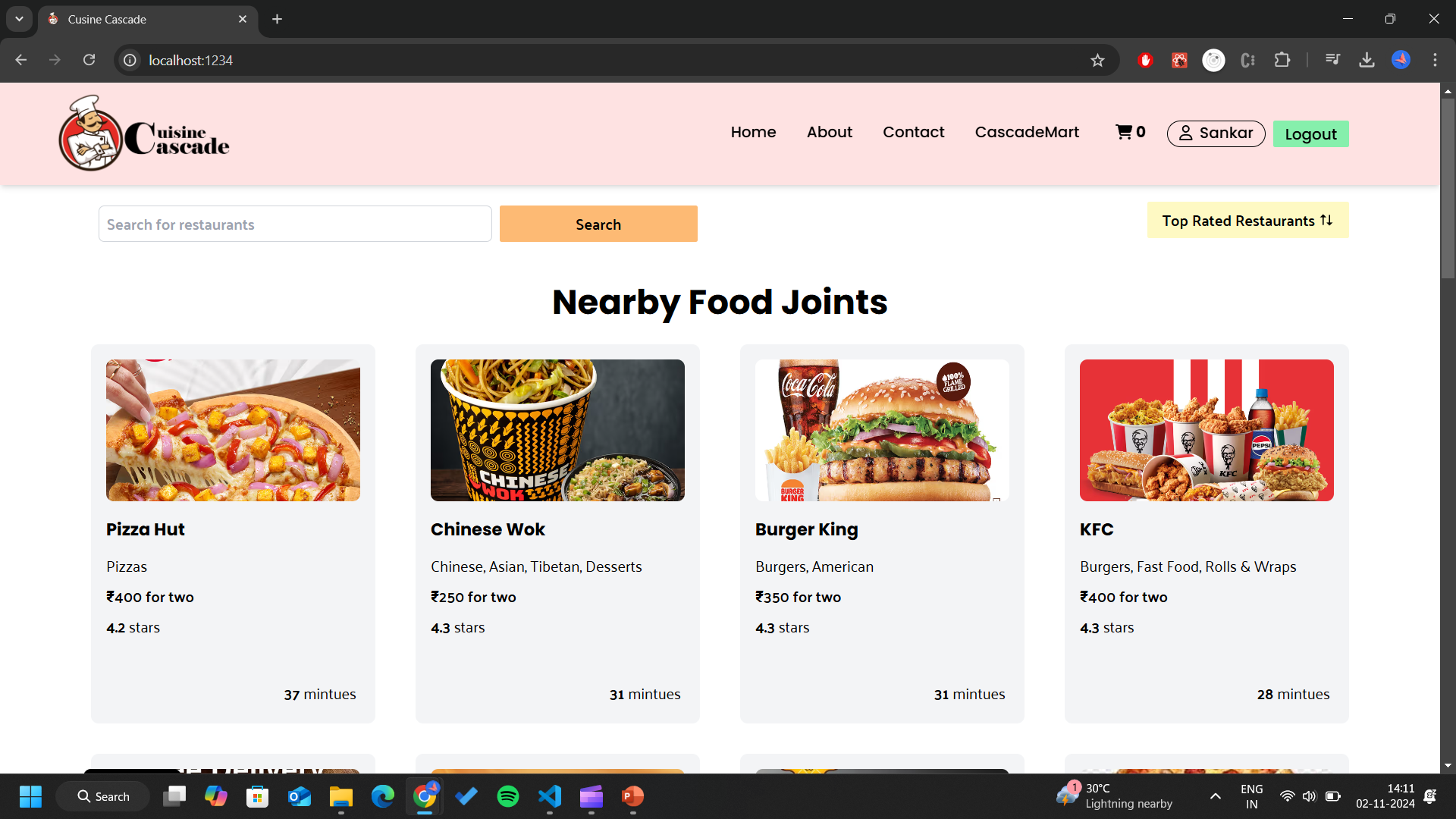 Cuisine Cascade is a modern food ordering web application that simulates a real-world platform similar to Swiggy, designed with React, Tailwind CSS, Redux, and integrated with SwiggyAPI for fetching restaurant and menu data. This project is perfect for those learning full-stack web development and showcases how to build a responsive, data-driven app.