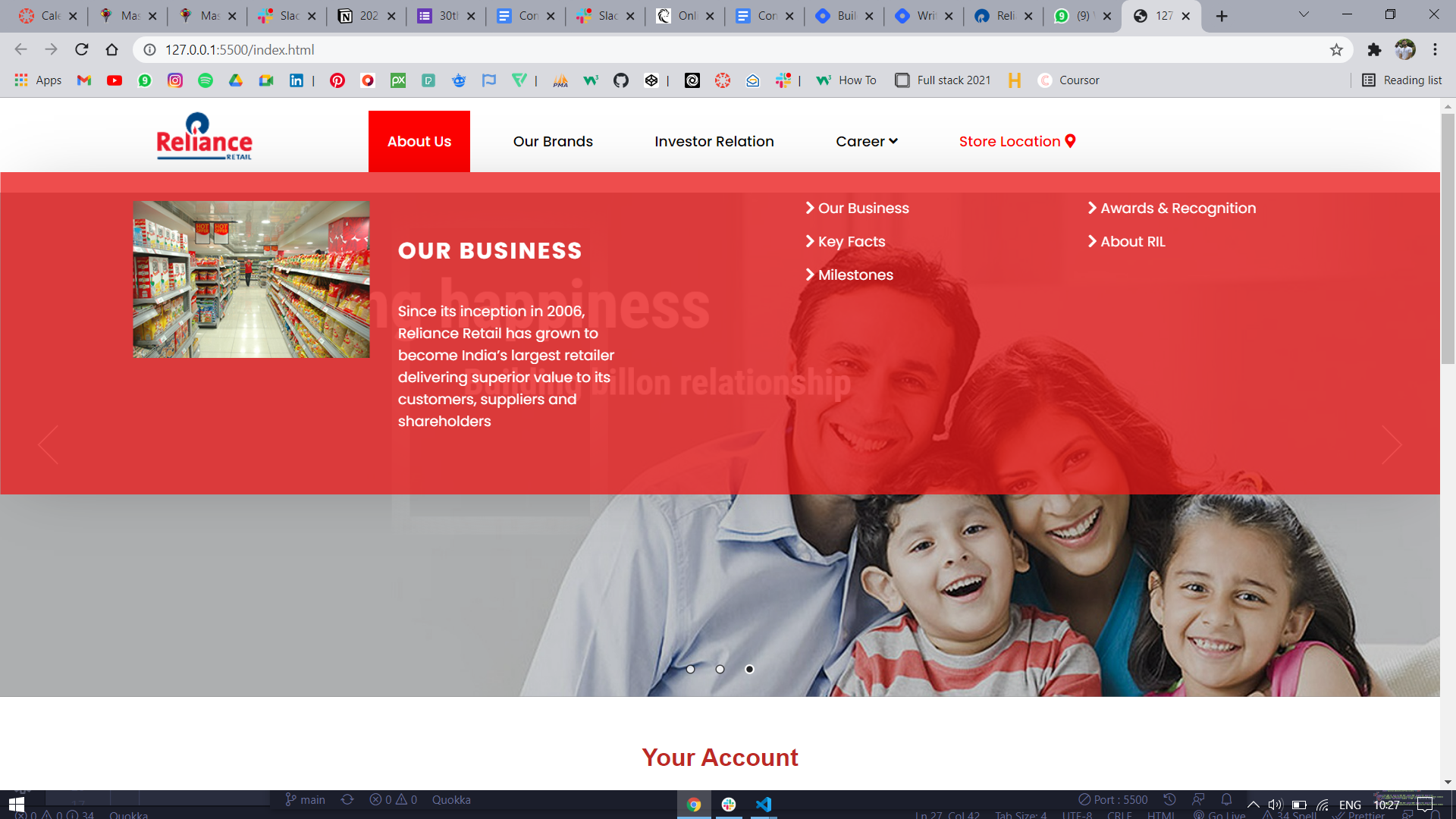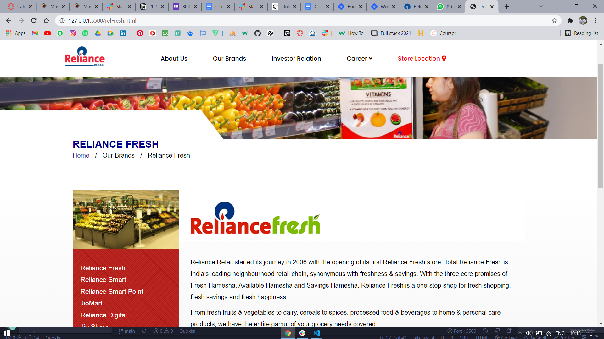 So I had a problem statement that I have to create a clone of a website called relianceretail.com . Also I can use my HTML, CSS, JavaScript, Advance Javascript, JQuery, slick and cloud flair library and API knowledge.