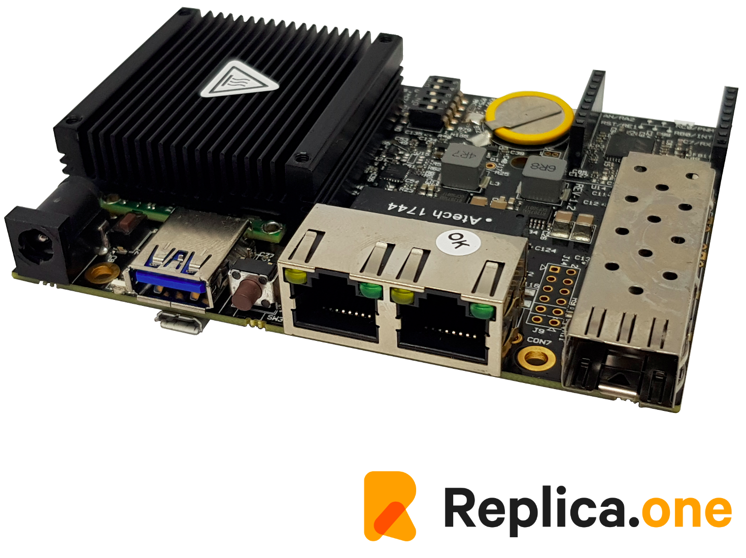 SolidRun ClearFog Base is a SoM based on the Marvell's Armada A388 module. It is powered by the 32-bit Cortex A9 processor and features 1 x mPCIE PCIe X1 Gen2.0 slot, 1 USB 3.0 port, 2 dedicated Ethernet ports, 1 SFP 2.5GbE port and a MicroSD card slot.