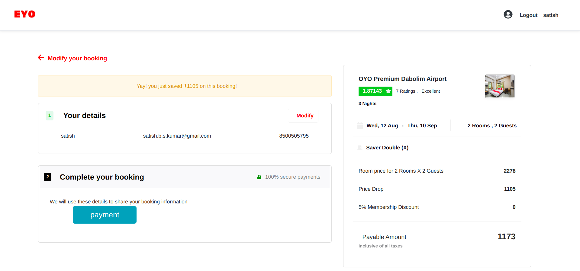 - Book a hotel by paying through payment gateway.