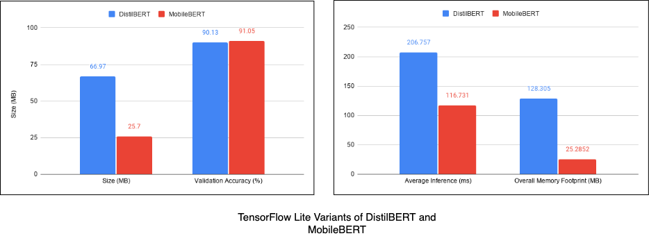 Compares the DistilBERT and MobileBERT architectures for mobile deployments. It is a part of the End-To-End TFLite Tutorials project. Here's blog post (TODO: link) that presents this comparison in a comprehensive manner.