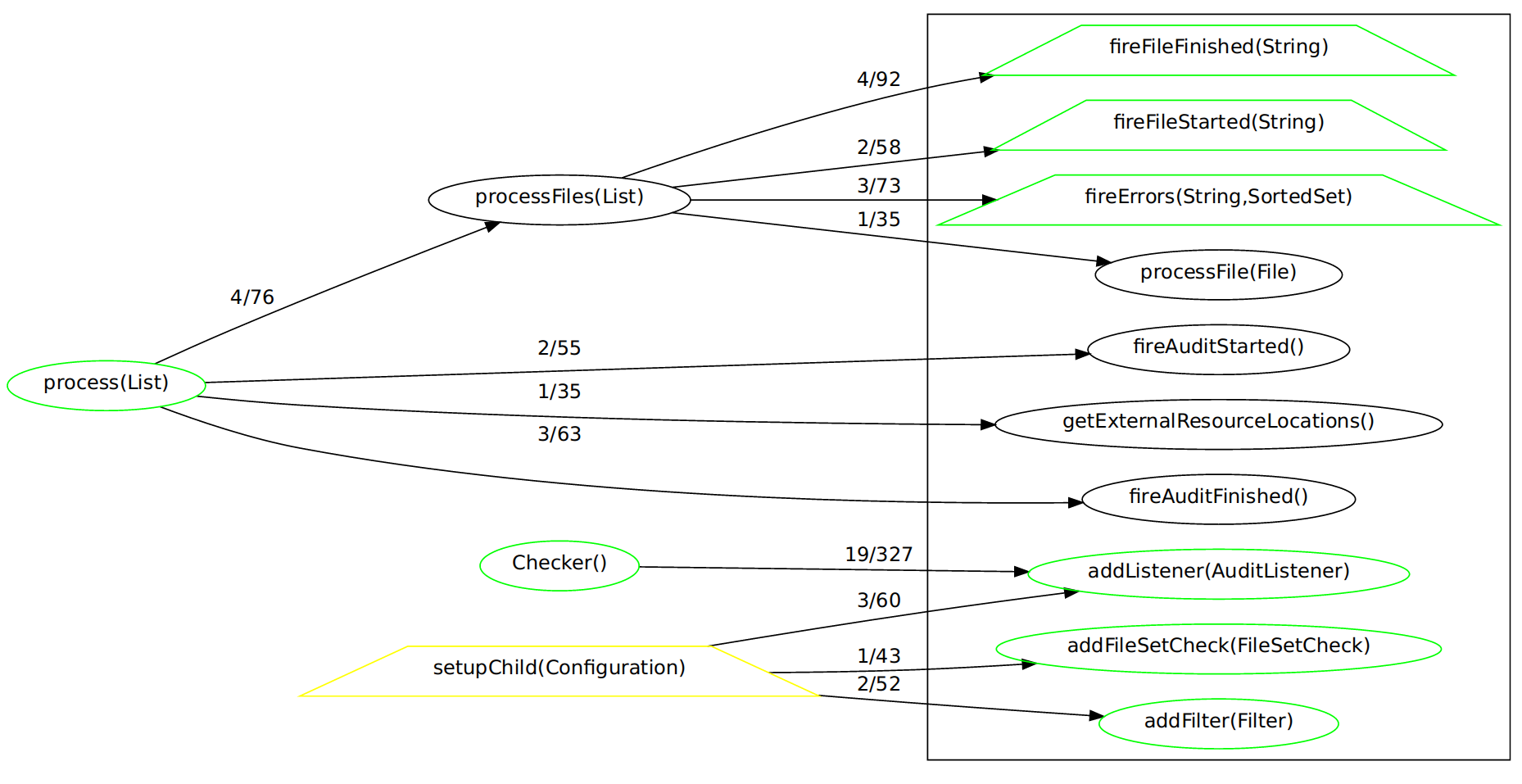"Checker()" -> "addListener(AuditListener)" [ label="19/327" ];
