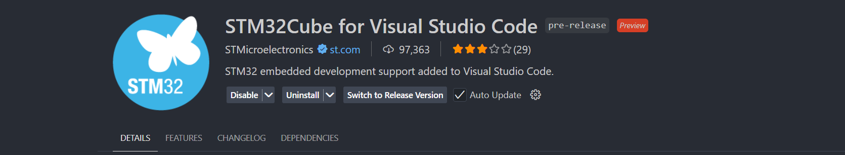 下载之后在vscode侧边栏可以看到stm32插件的菜单。, 点击user guide 则可以看该插件配置教程。