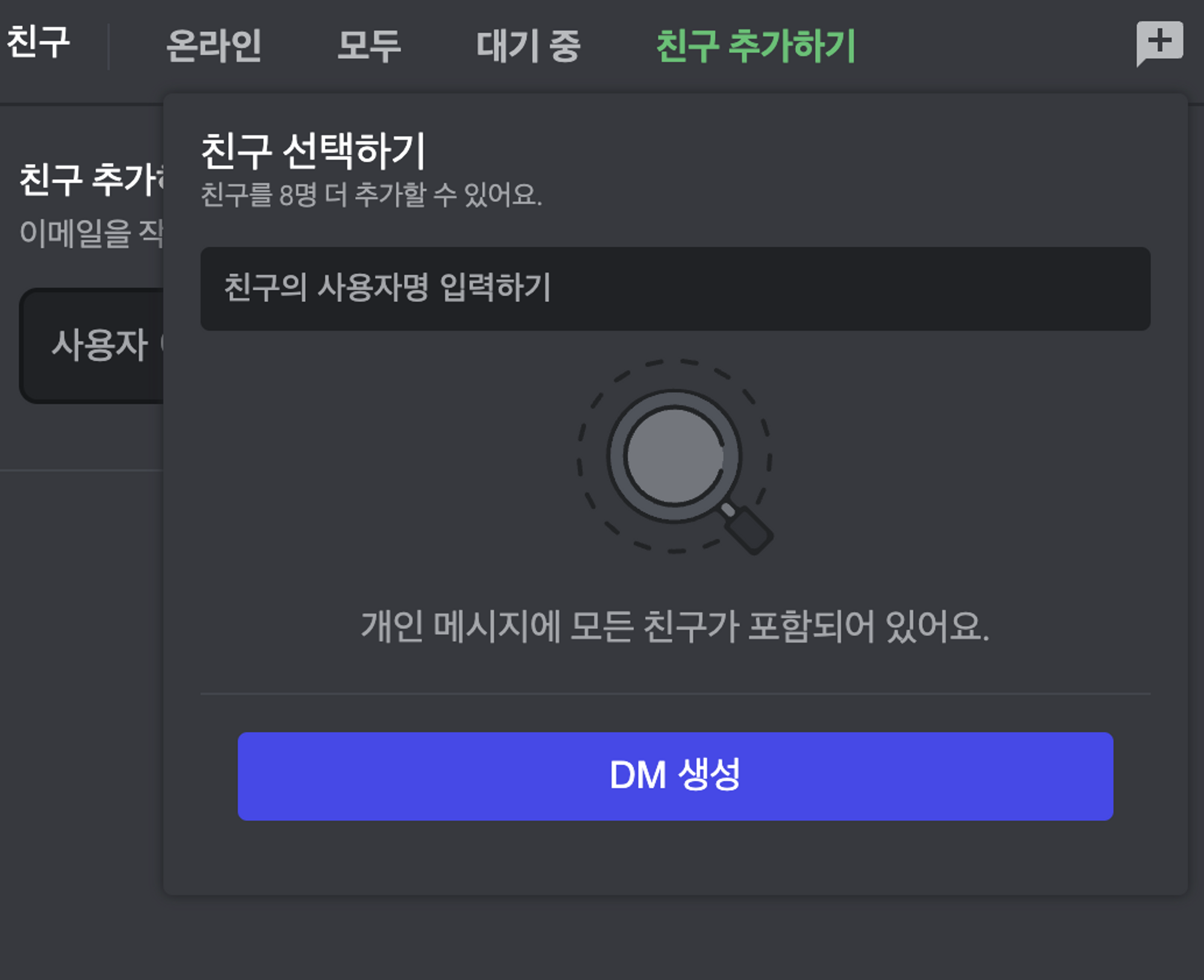 발생한 이유는 친구 요청 보내기 인풋 창 안에 값을 입력하기 전까지 친구 요청 보내기 버튼이 disabled 처리가 되는데, 이때 opacity: 0.4 속성도 적용해준다.