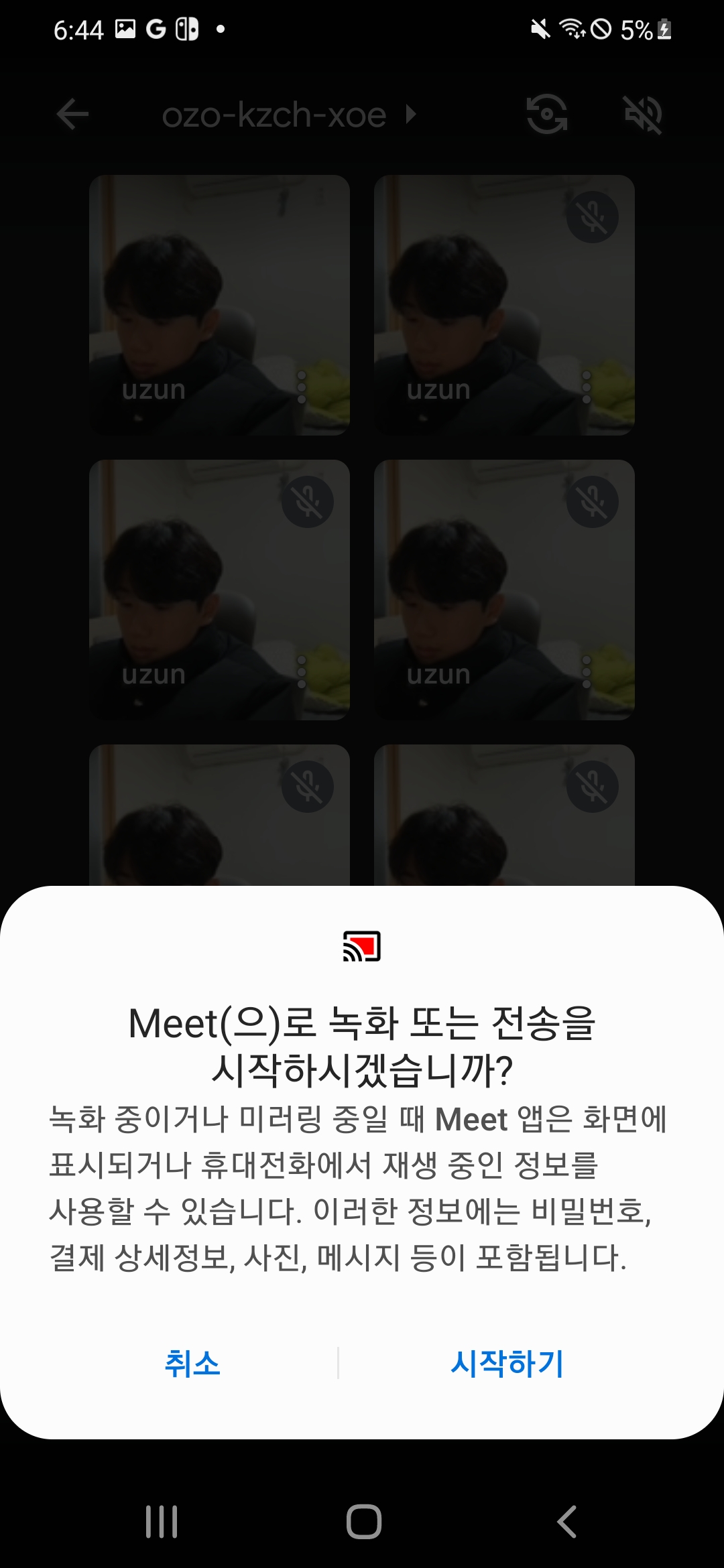 | 햄버거 메뉴 선택 | 화면 공유 시작 1 | 화면 공유 시작 2 |