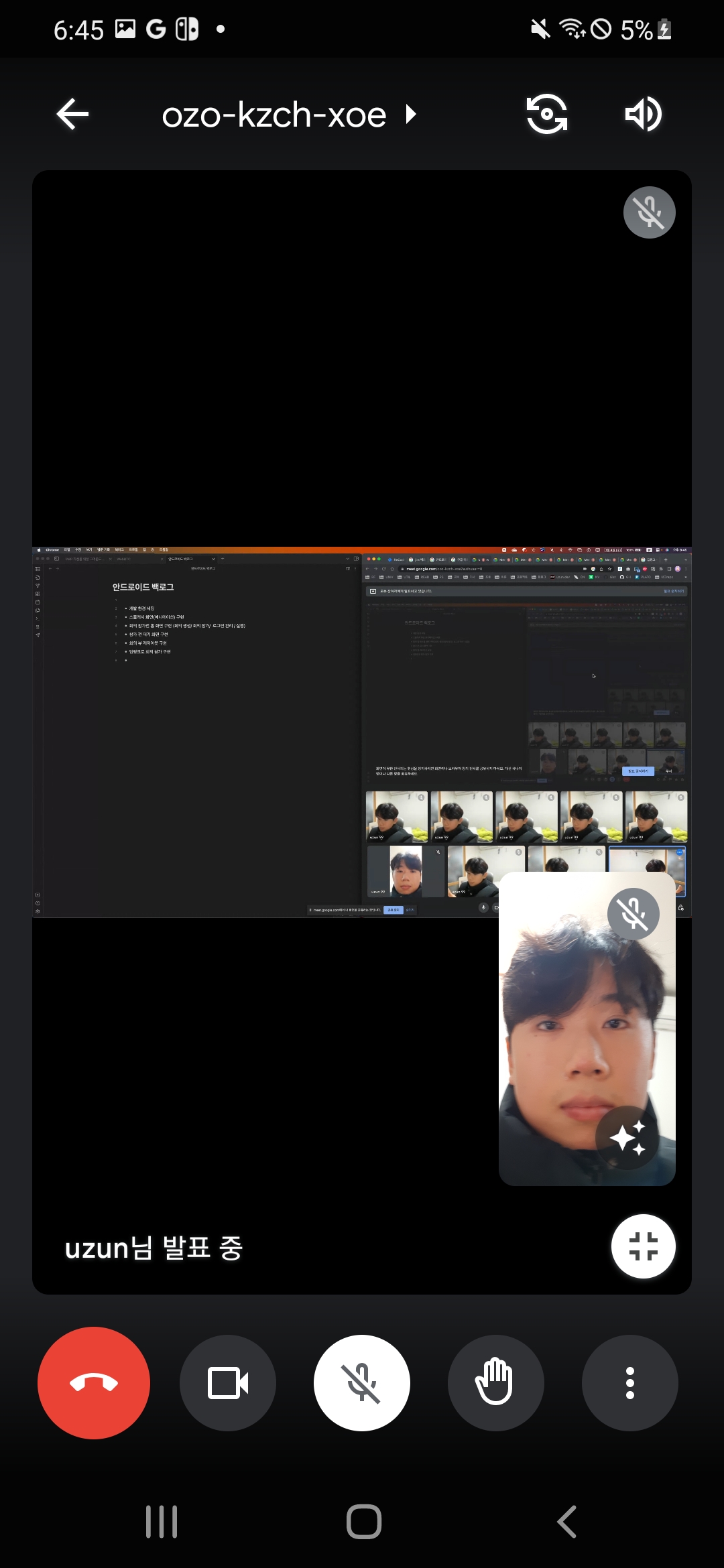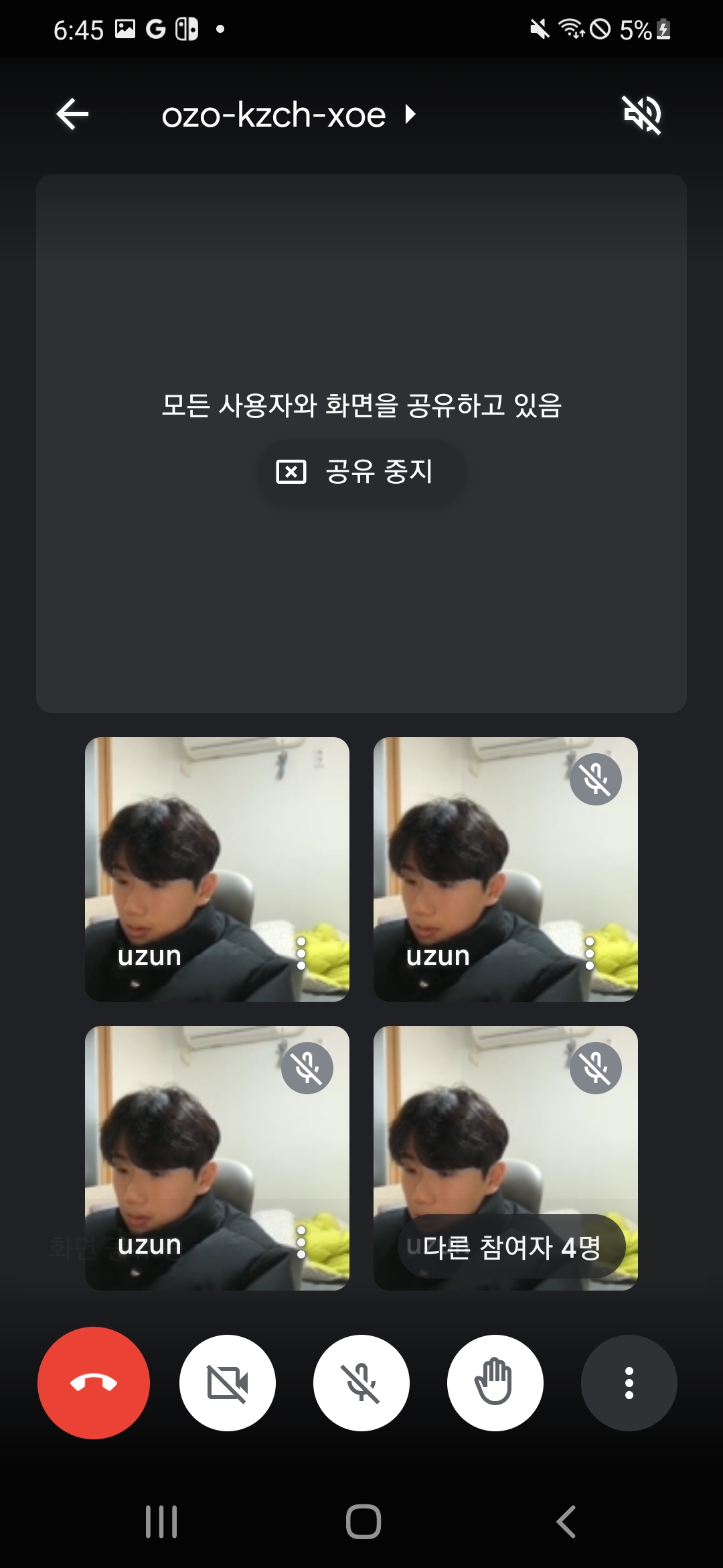 - 햄버거 더보기 (화면공유, 채팅, 설정 등등)