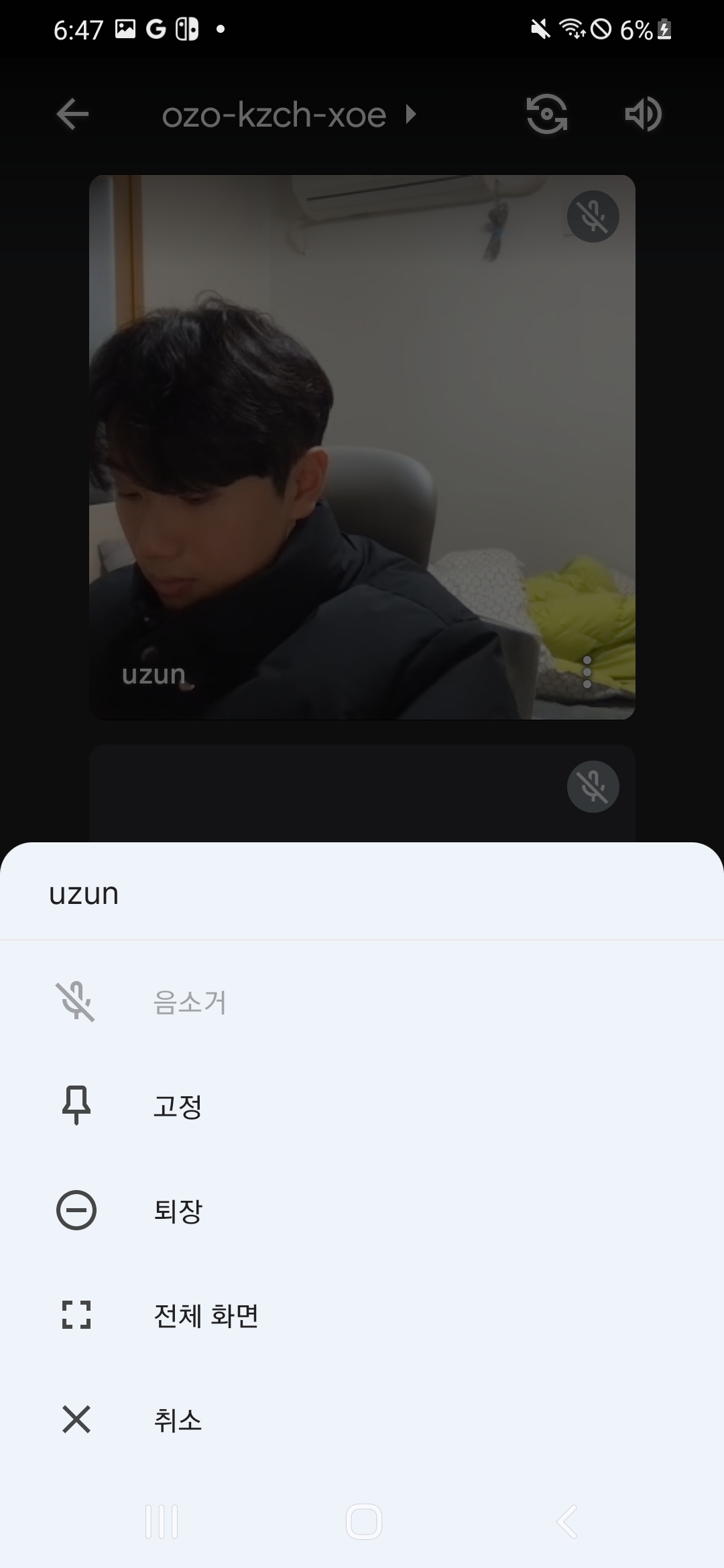 | 참가자 선택 메뉴 | 참가자 고정 | 강제 퇴장 |