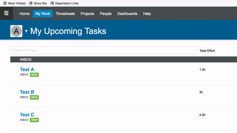 When you are on the 'My Work' page, click this bookmarklet to display the ID of each task on the page.