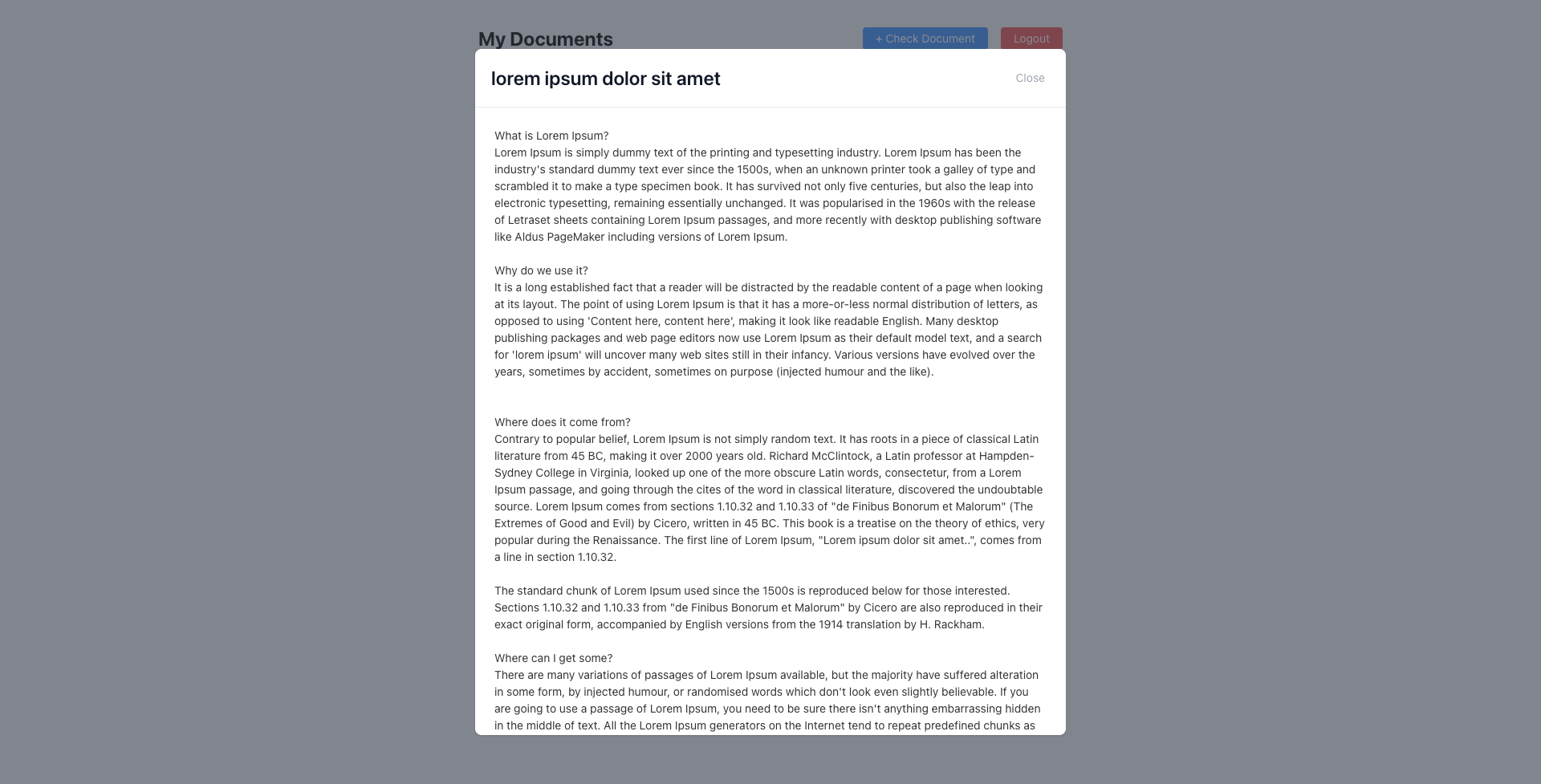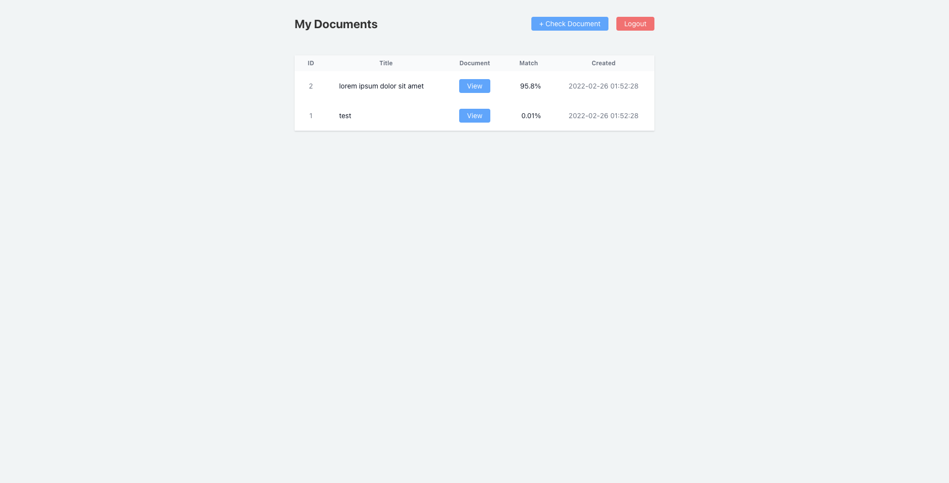 docker run --rm -p 3000:3000 plagiarism-detector - Browse using a web browser: