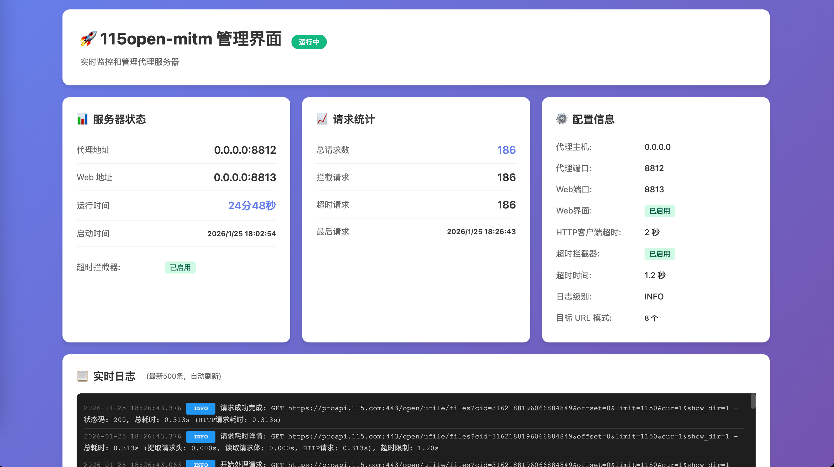 - 配置完成后,115 网盘的流量将通过 115open-mitm 代理进行转发