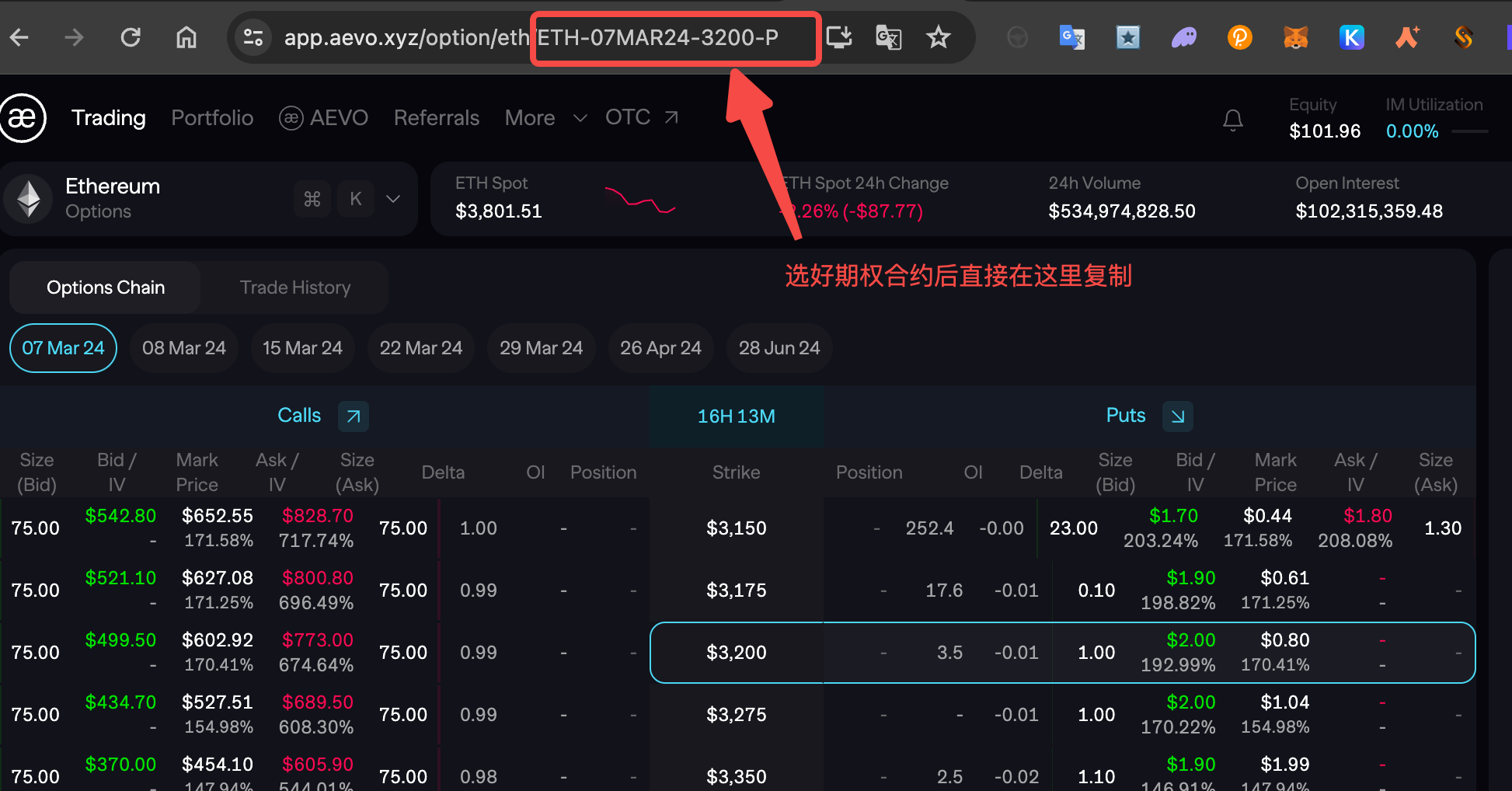 option_symbol的值在选定合约后的浏览器地址输入框里面复制: