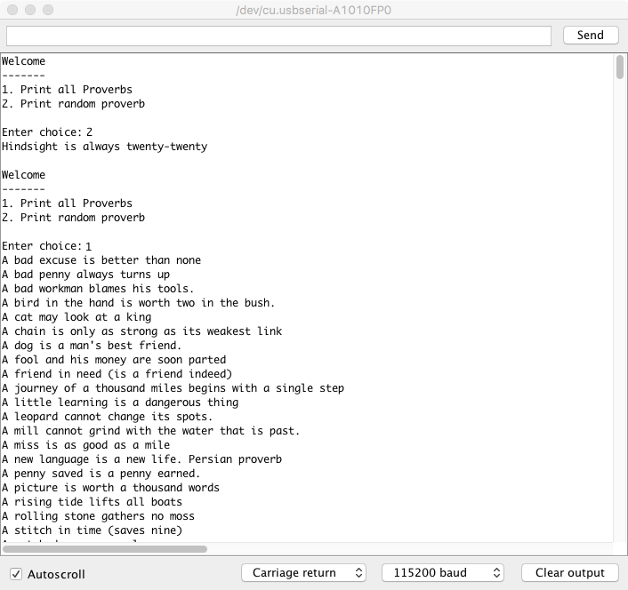 Shox96 can achieve upto 60% compression depending on the composition of text. This can be especially useful in constrained environments like Arduino Uno where only 32kb of Flash memory is available.