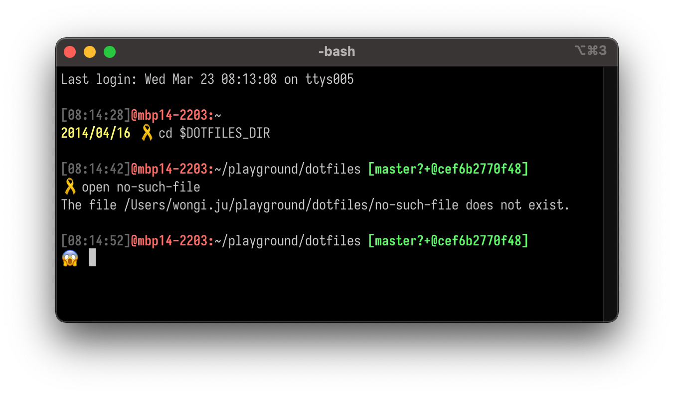 My dotfiles profile update DOTFILES_DIR and link $HOME/.profile -> $DOTFILES_DIR/profile prompt_resources colors and emoji definitions for PS1 PS1 with emojis