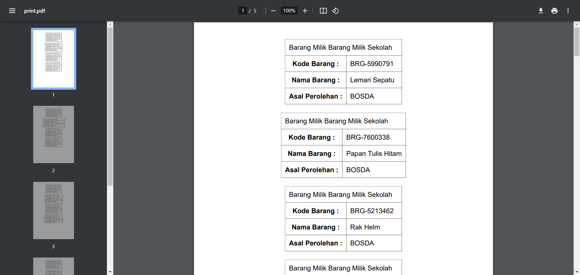 Masukan nama sekolah pada konfigurasi .env untuk menampilkan nama sekolah pada print barang. Berikan tanda kutip jika nama sekolah mengandung spasi