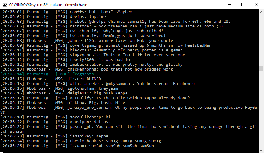 This makes it much more lightweight than using a browser and much more simple than using a full IRC client just for twitch