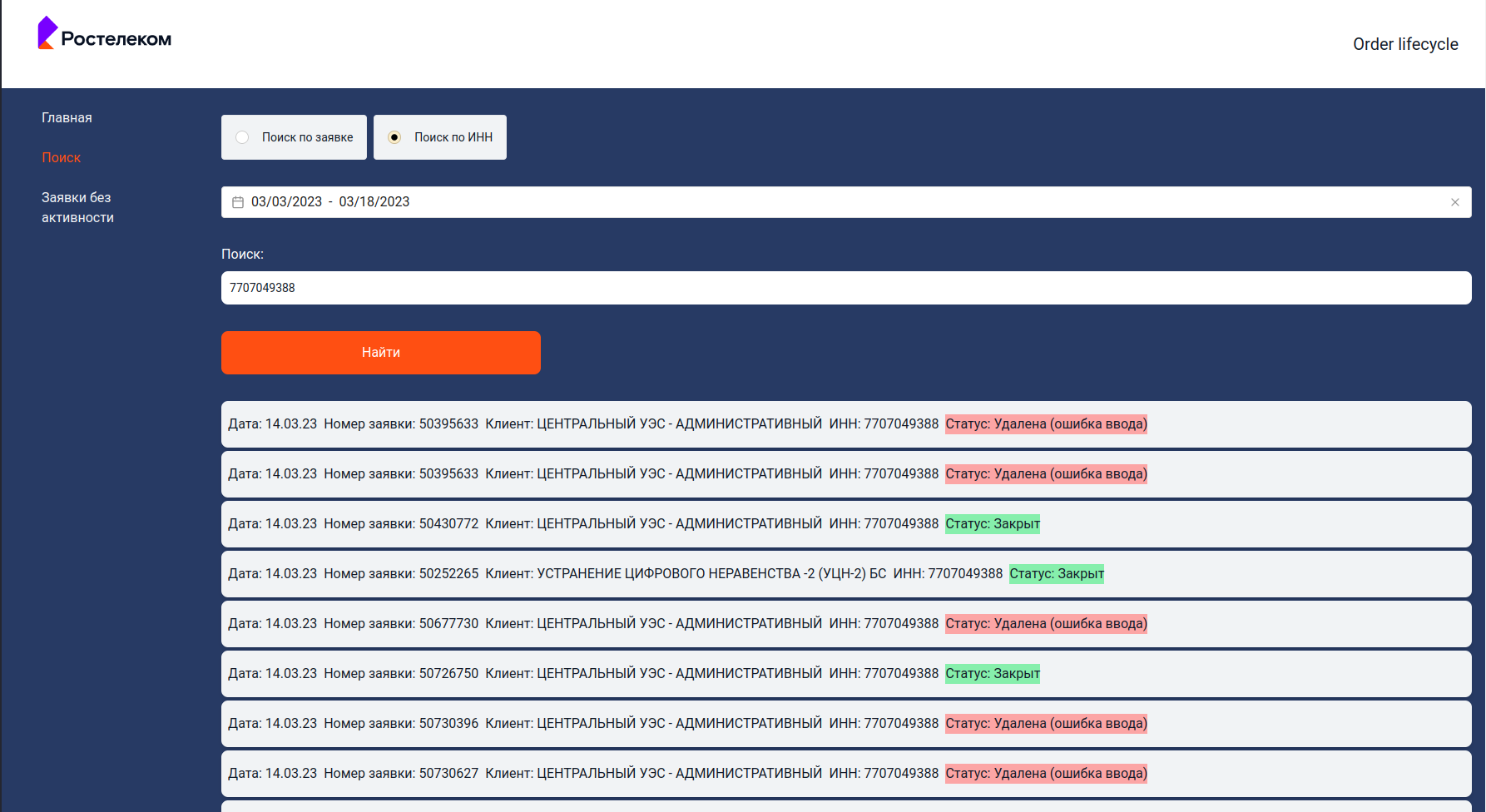 The solution should collect information from files in such a way that we can clearly see which way the application goes on different dates. By entering the application number, TIN or all together, the manager should see what status it was in for the selected period of time.