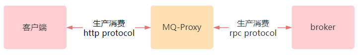 - 客户端采用HTTP协议,通过MQ-Proxy进行通信,发送生产消息或消费消息的请求。