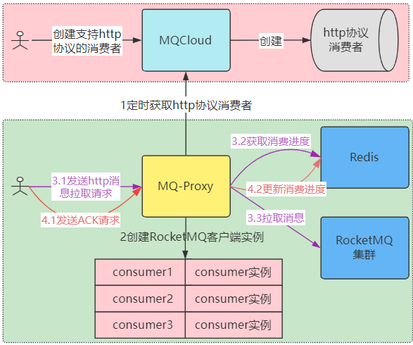 MQ-Proxy定时从MQCloud中获取到支持HTTP协议的消费者。