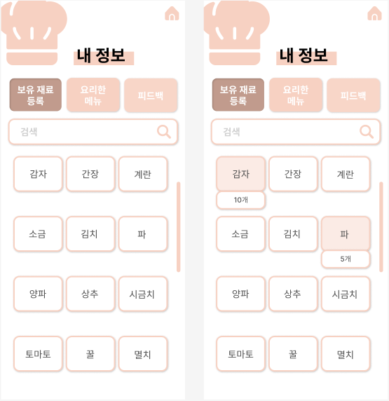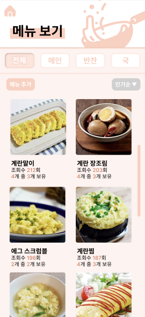 ๋ณด์ ์ฌ๋ฃ๋ฅผ ๋ฑ๋กํ๋ฉด ๋ฉ๋ด ํ๋ฉด์์ ์ฌ๋ฃ๊ฐ ์ถฉ์กฑ๋ ์๋ฆฌ ๋ฉ๋ด๊ฐ ์ฐ์ ์ ์ผ๋ก ๋จ๊ณ ์ฌ๋ฃ๊ฐ ๋ถ์กฑํ๋ฉด ์ซ์๋ก ๋ช ๊ฐ๊ฐ ๋ถ์กฑํ์ง ๋ฌ๋ค. ์๋๋ถ์ฐ๊ฐ ๋ฉ๋ด์ ์ฌ๋ฃ๊ฐ 5๊ฐ์ง๊ฐ ๋ค์ด๊ฐ๋๋ฐ 4๊ฐ๋ง ์๋ ๊ฒฝ์ฐ 4/5 ์ด๋ฐ ์์ผ๋ก!