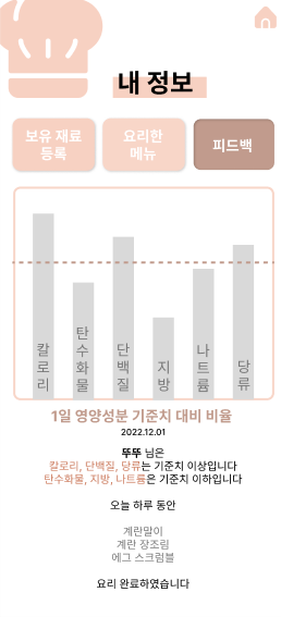 ํ๋ฃจ ๋์ ์๋ฃ๋ ์ฌ์ฉ์๊ฐ ์ญ์ทจํ ์๋ฆฌ๋ฅผ ๋ํ์ ์ธ ์์์ฑ๋ถ์ ๊ธฐ์ค์น ๋๋น ๋น์จ๋ก ๊ณ์ฐํ์ฌ ํผ๋๋ฐฑํด์ค๋ค.
