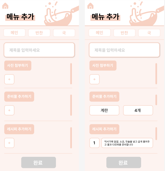 ๋ฉ๋ด ์ถ๊ฐ ์ ์ฌ์ง ๋ฑ๋ก๊ณผ ์ค๋น๋ฌผ, ๋ ์ํผ ์์๋ฅผ ์ถ๊ฐํด์ผ ์๋ฃํ ์ ์๋ค.