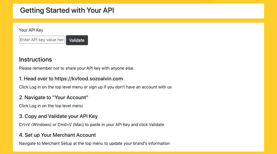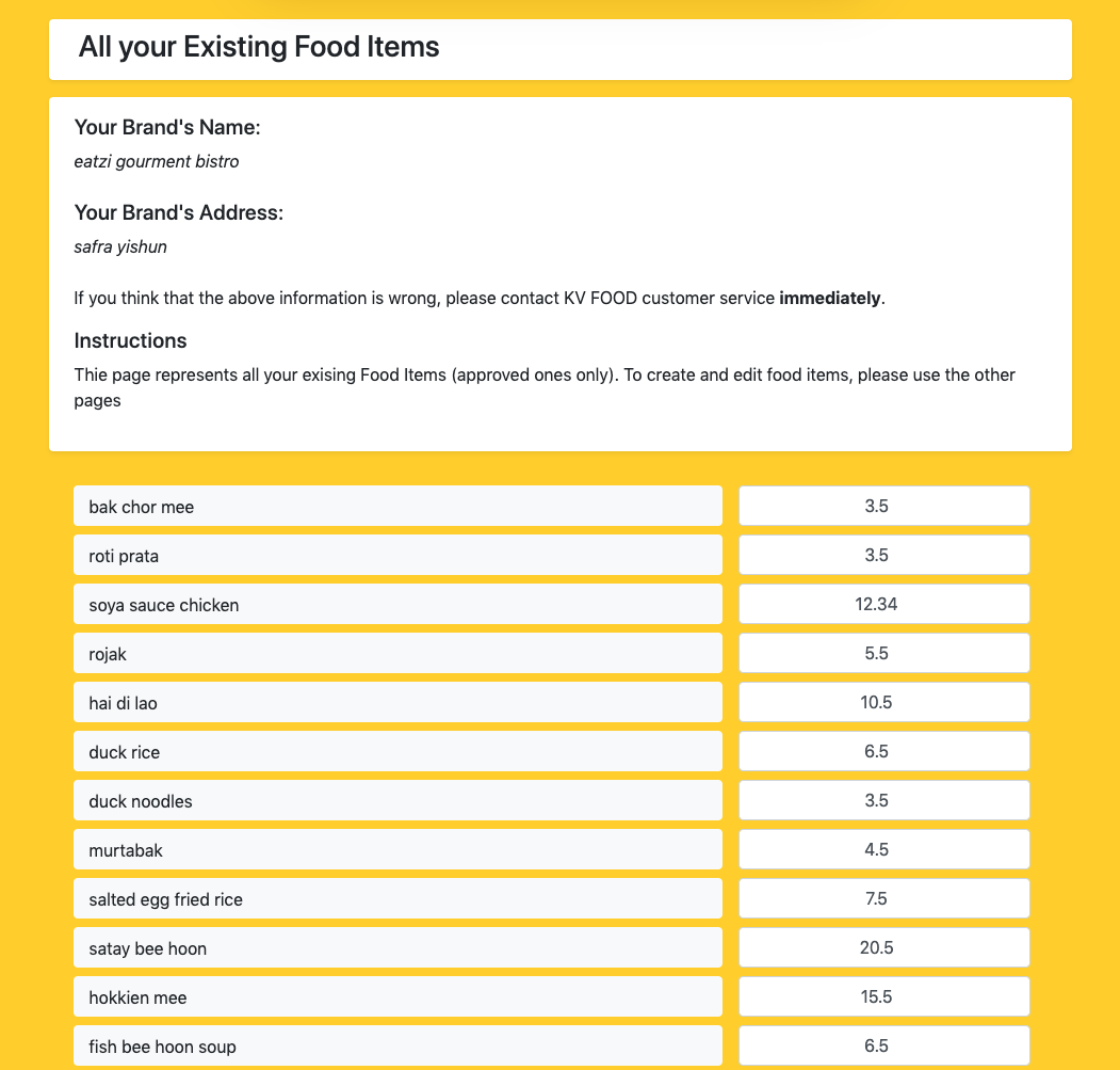 The client app was an extension of the server application to allow different merchants on board to make their own changes to their menu items with us. As the clients' interfaces uses API keys that can be retrieved from the main server after loggin in, merchants are able to make changes to their menu items easily as long as they have their API key, and have a browser to access https://kvclient.sozoalvin.com