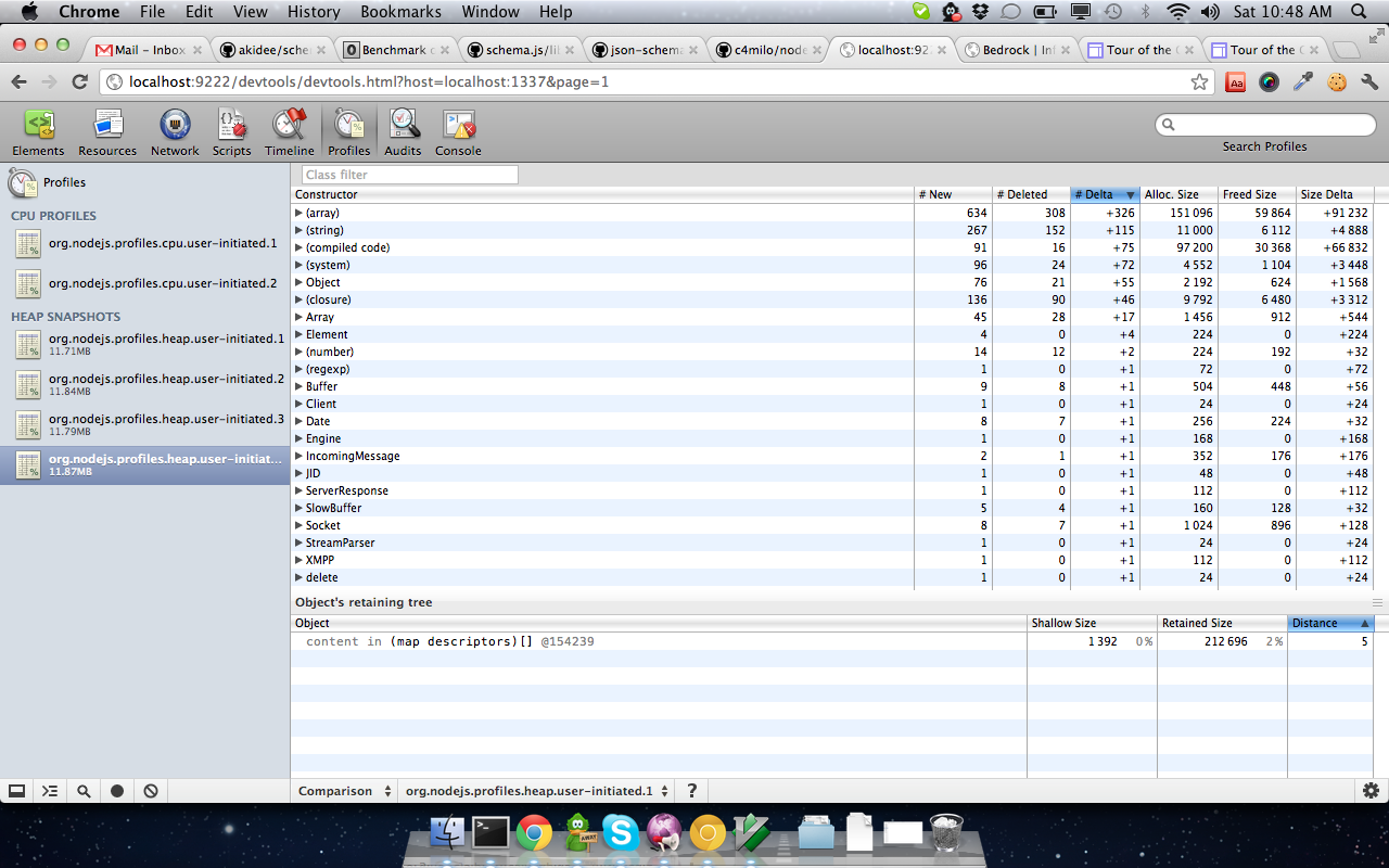 This module is an implementation of Chrome developer tools protocol. It is still pretty much a work in progress and only the heap and CPU profilers are working right now. Debugger, console and networking will be added soon.