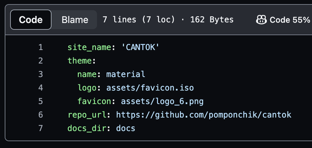 mkdocs.ymlfile looks like:Next, I start the server using the command:
