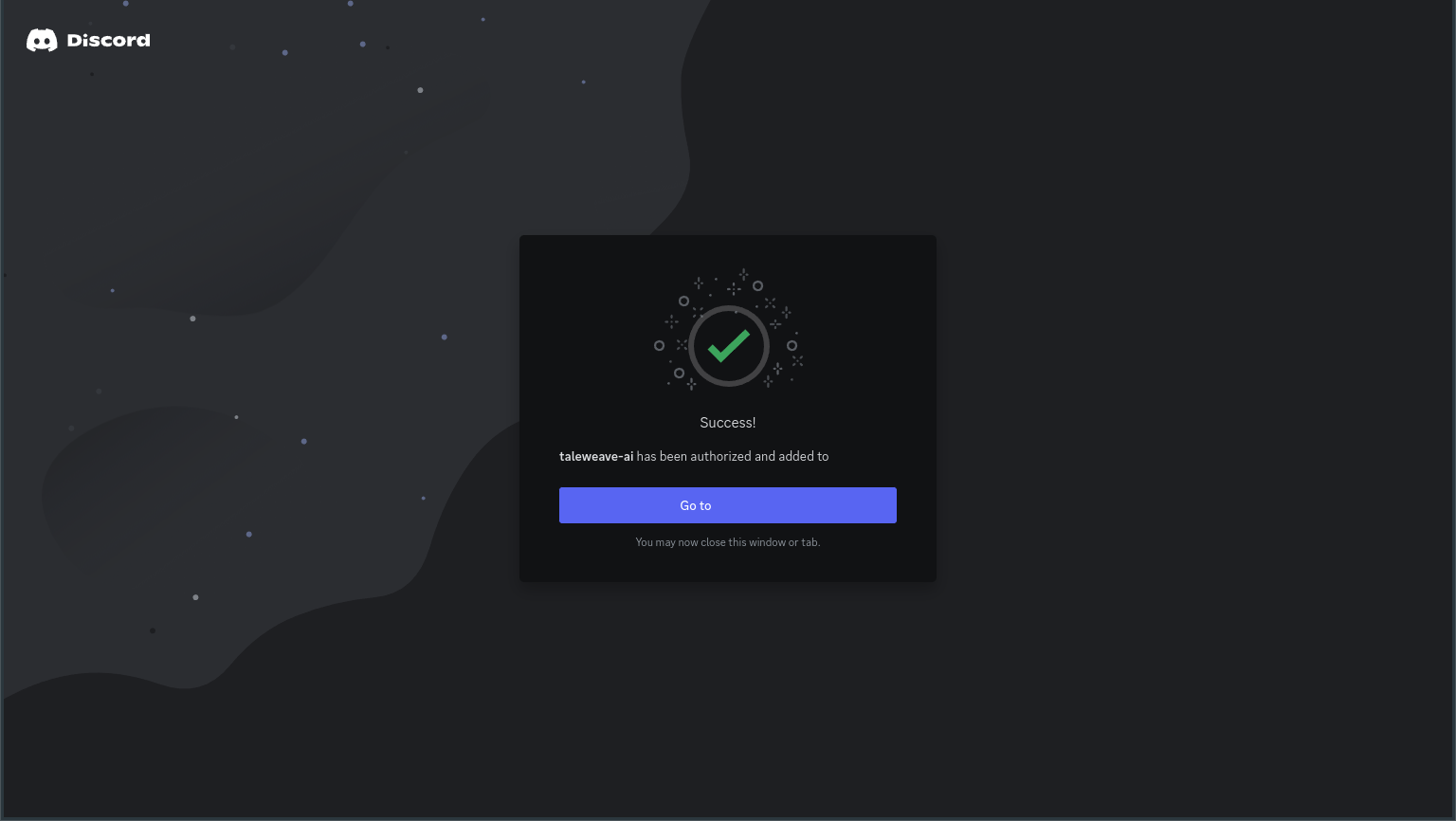 You should see a success page, with a redirect to the server that you chose before. You can follow this link or close the browser and connect to Discord through the desktop or mobile apps.