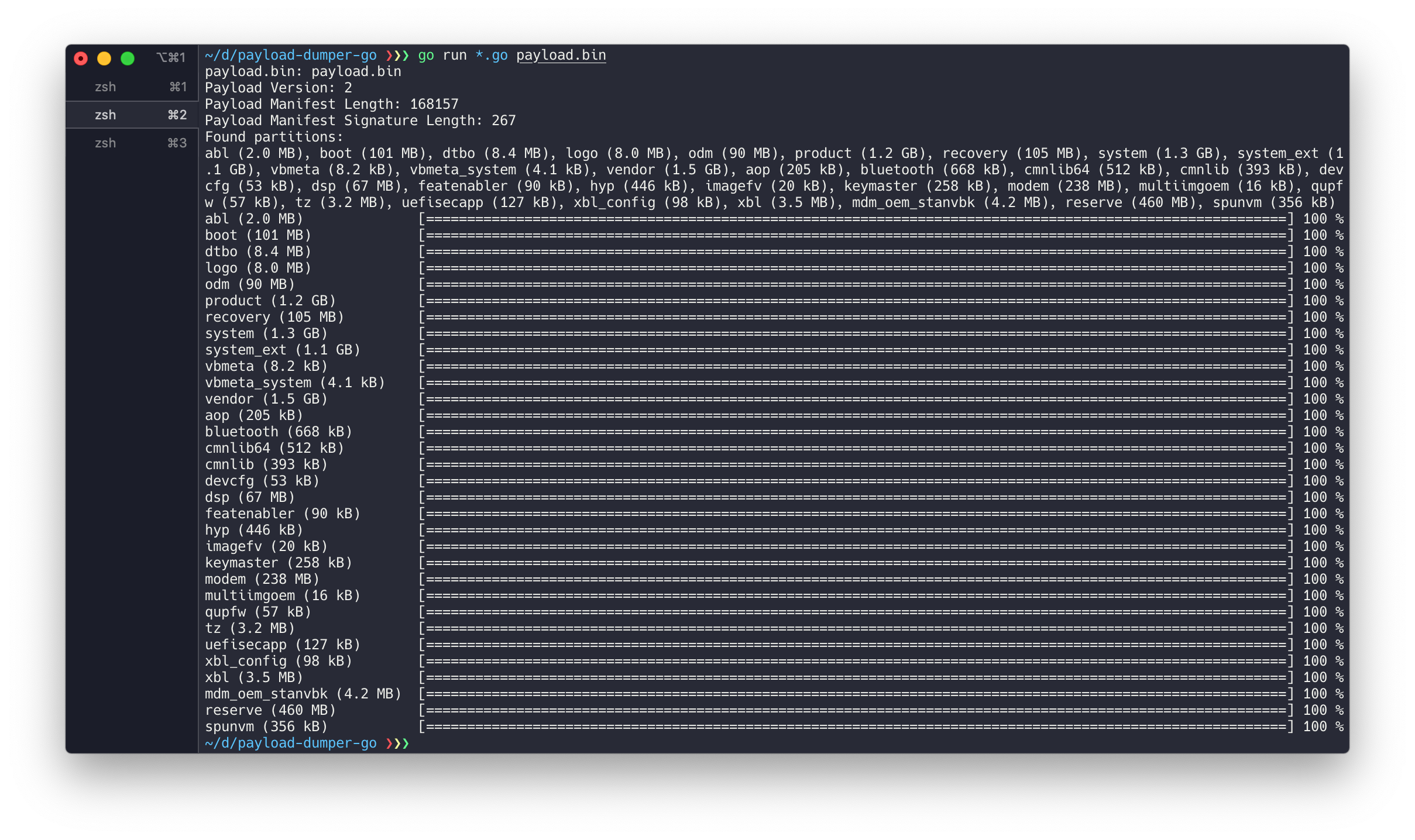 See how fast payload-dumper-go is: https://imgur.com/a/X6HKJT4. (MacBook Pro 16-inch 2019 i9-9750H, 16G)