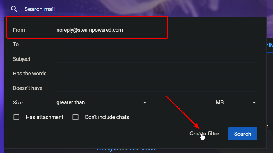Enter: noreply@steampowered.com