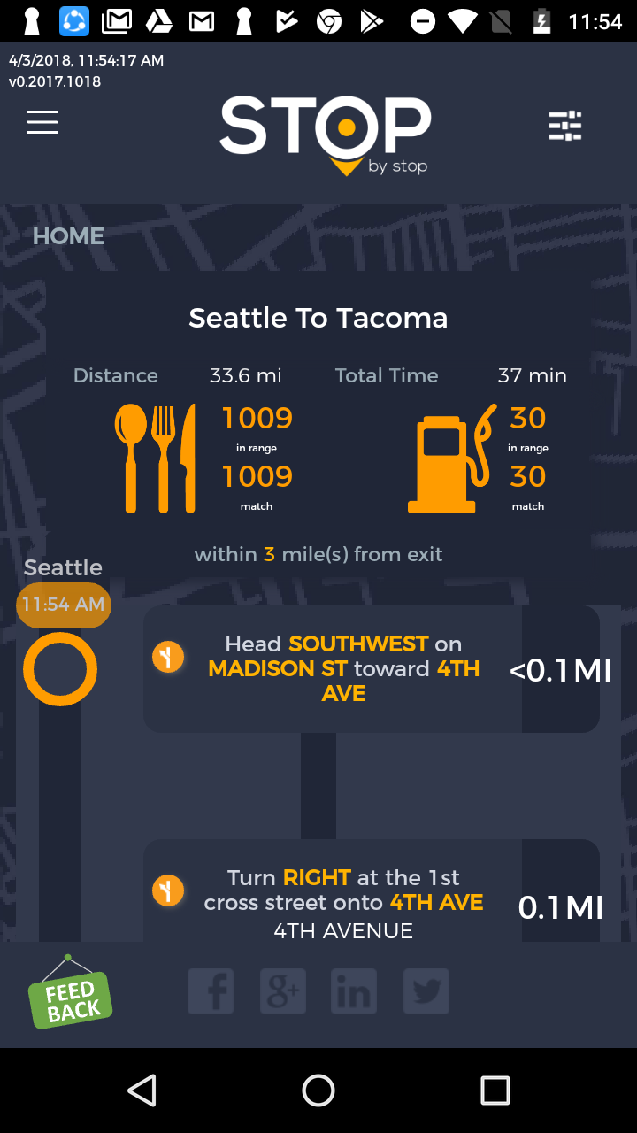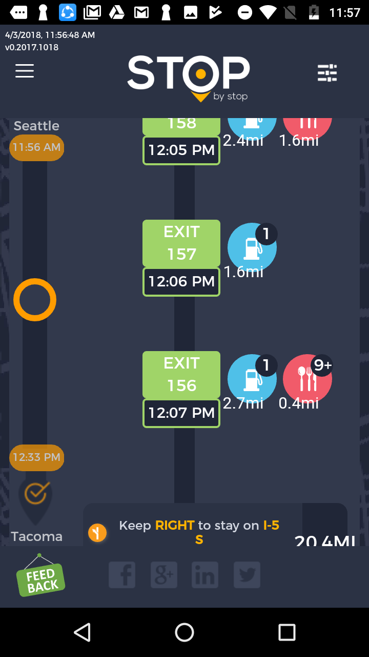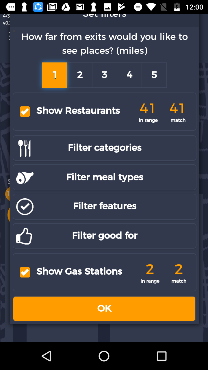 5. FiltersDistancePropagateToExit. A. Open Seattle to Tacoma route. B. Click on Filters and select 1 mile from exit. C. Close Filters popup and navigate to exit page. D. On the exit page open Filters popup and verify that distance settings (1 mile from exit) from route page are propagated. E. Take screenshot. |