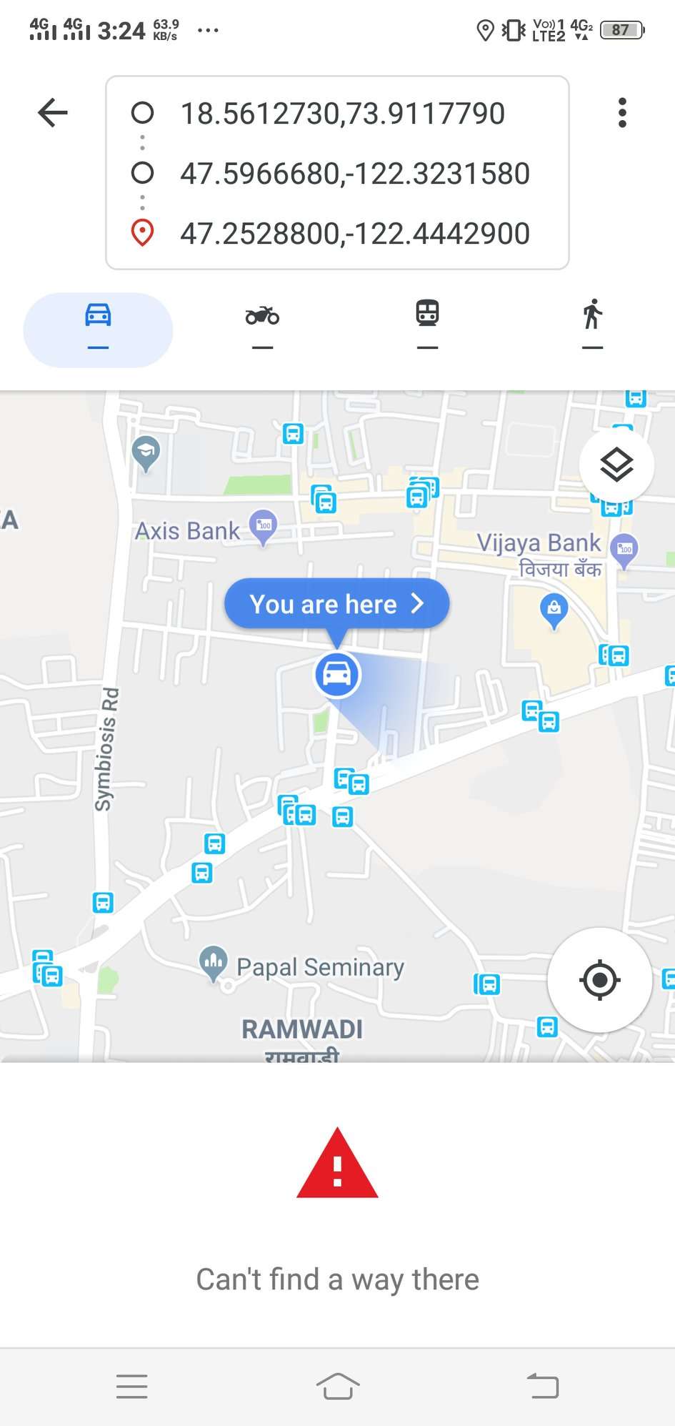 3. RouteDragSidebar. A. Navigate to test_server/route/47.68950,-122.03859-to-tacoma-wa-united-states. B. Drag sidebar to the very bottom. Verify that route page is scrolled to the bottom. C. Drag sidebar to the middle. Verify that route is scrolled to about middle. Take screenshot. |