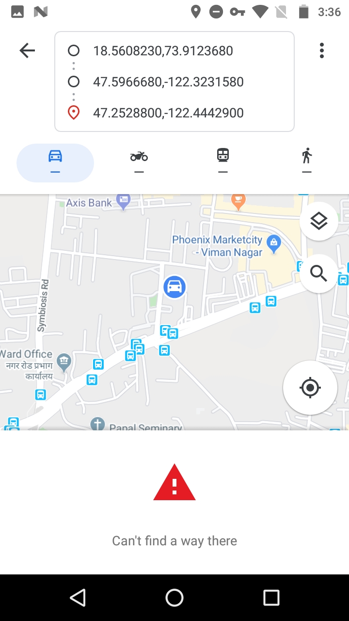 7. POISelectionMultipleWithMap. A. In the new browser tab open Seattle to Tacoma route. B. Click on first exit in the road line. Exit page should open. C. On the exit page click on the first item in the list. POI Page should open. D. Click on + button. POI selection popup should open. E. Click on Add to route. Route page should open. D. On the sidebar there should be an icon to indicate the place that was added to the route. E. Scroll the roadline all the way down and pick the last exit. Exit page should open. F. On the exit page select Map view. G. Verify that Map can be dragged around and zoomed in/out H. Click browser back button to go back to route page. I. On the sidebar there should be 1 place that you picked. Take a screenshot. |
