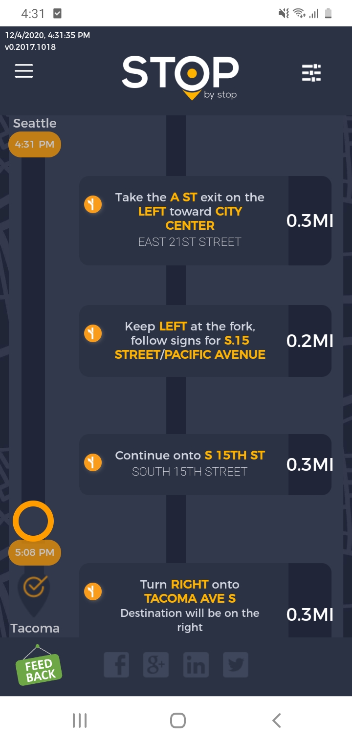 4. ExitPagesNavigation. A. Navigate to test_server/ B. Type Seattle to Tacoma route and navigate. C. Click on first exit. Verify that exit page opens and both - gas stations and restaurants are shown. Click back button in the browser to go back. D. Click on restaurant icon for the same exit and verify that same exit opens, but only restaurants are shown. Go back. E. Click on gas station icon for the same exit and verify that same exit opens, but only gas stations are shown. F. Verify that clicking on Phone icon opens Phone application. Some of the items (but not all of them) will have Yelp icon displayed next to them. Verify that clicking on Yelp icon navigates to Yelp website. Take a screenshot from Yelp website. |