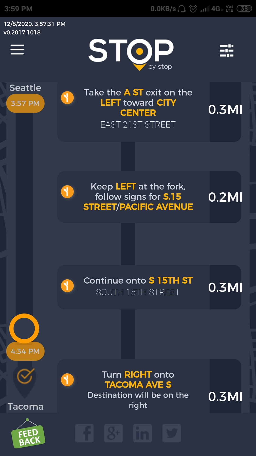 4. ExitPagesNavigation. A. Navigate to test_server/ B. Type Seattle to Tacoma route and navigate. C. Click on first exit. Verify that exit page opens and both - gas stations and restaurants are shown. Click back button in the browser to go back. D. Click on restaurant icon for the same exit and verify that same exit opens, but only restaurants are shown. Go back. E. Click on gas station icon for the same exit and verify that same exit opens, but only gas stations are shown. F. Verify that clicking on Phone icon opens Phone application. Some of the items (but not all of them) will have Yelp icon displayed next to them. Verify that clicking on Yelp icon navigates to Yelp website. Take a screenshot from Yelp website. |