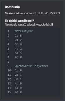 Bombunia is a self-hosted bot that retrieves class grade data every specified interval, stores it and allows further analysis of the data