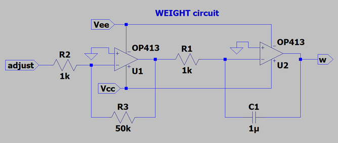 Let Vw be the output voltage, Vadjust be the input voltage used to adjust the weight. Then the relation between them can be given by:
